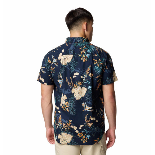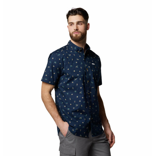Au bureau ou sur la piste, vous serez à l'aise dans cette chemise boutonnée à manches courtes 100 % coton à la silhouette classique, déclinée dans une gamme de couleurs et d'imprimés éclatants.