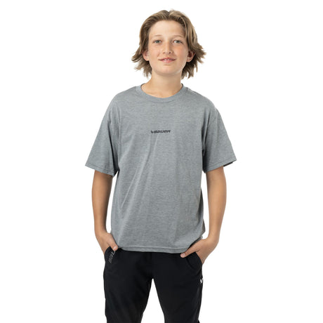 - BAUER lockup centered on the chest