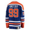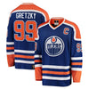 Wayne Gretzky wasted no time proving that he was "The Great One". The 1979 - 80 NHL season was both the Oilers and Gretzky's first seasons in the NHL. While the team finished with a respectable 28 - 39 - 13 record, Gretzky was more than respectable. Gretzky finished the season with 137 points, 51 goals and 86 assists, tied for the league lead with Marcel Dionne. The 86 assists also led the league, and to this day, 137 points is still the record for most points scored by a first year player. While the jersey looks the same as the later Oilers jerseys that we make, there are differences: the sleeve numbers, the back twill and the back name font to name a few. This jersey also features a patch celebrating the 75th anniversary of the founding of the City of Edmonton.