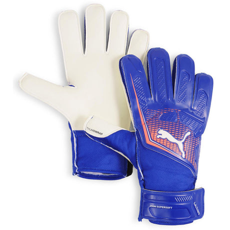 The Puma Ultra Play RC Soccer Goaltender Gloves, available at Source for Sports, offer superior grip and durability. Featuring a latex palm for excellent ball control, a breathable mesh backhand, and a secure Velcro wrist strap, these gloves deliver comfort, support, and reliable performance in every save.