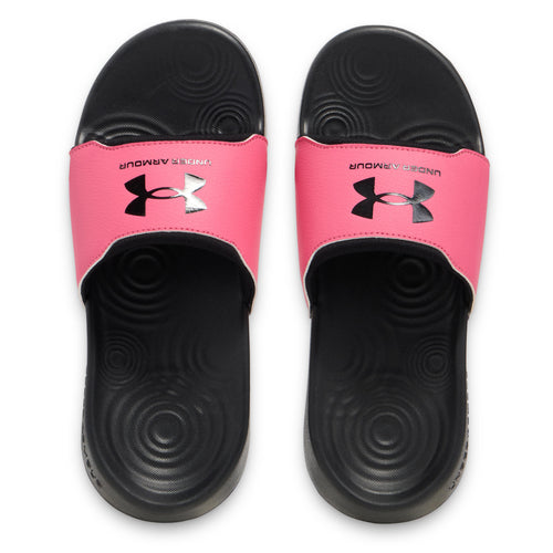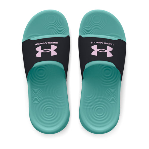 Elevate your young athlete's running experience with the Under Armour Ignite Select Girls' Slides. Featuring a fixed strap with rolled edges and added foam for superior comfort, a drop-in EVA footbed for underfoot cushioning, and raised sidewalls for enhanced stability. The durable EVA outsole ensures reliable traction, making these shoes a perfect blend of comfort and performance for every run. The memory foam not only feels great, but also helps eliminate pressure on your feet after you work out.