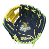 Bring the blue and yellow fun with the Savannah Bananas™ 11” Youth Baseball Glove Featuring Wilson’s iconic H-Web design, an elastic Quick Fit Wrist and soft-and-sturdy top grain leather, this glove is ready to hit the field right away with a snug, lightweight feel that helps young players make every play fun.